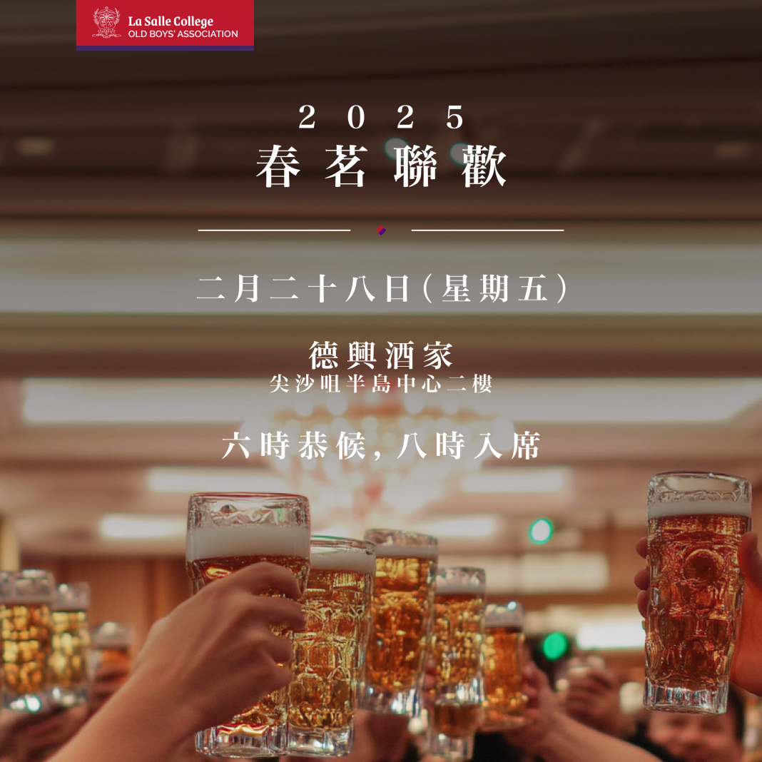 春暖花開,喇沙書院舊生會的傳統盛事春茗晚宴又來了!二月二十八日,誠邀各位喇沙仔齊聚尖東,共度一個難忘的夜晚。重溫昔日情誼,與不同年代的師兄弟重新連結之餘,亦可一同慶祝乙巳蛇年。尖東見!