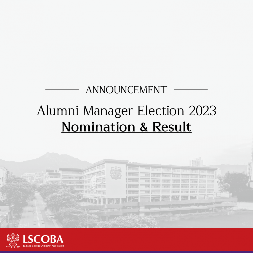 According to paragraph 22 of the Rules of Procedures for the Alumni Manager Election for the IMC, if there is only one eligible candidate, no election shall be conducted and the said only candidate shall be declared the successful candidate. In this regard, I am pleased to announce that Dr. Mak Hoi Kwan Calvin (Class of 2001) shall be nominated to the IMC as the Alumni Manager of La Salle College for the next term.